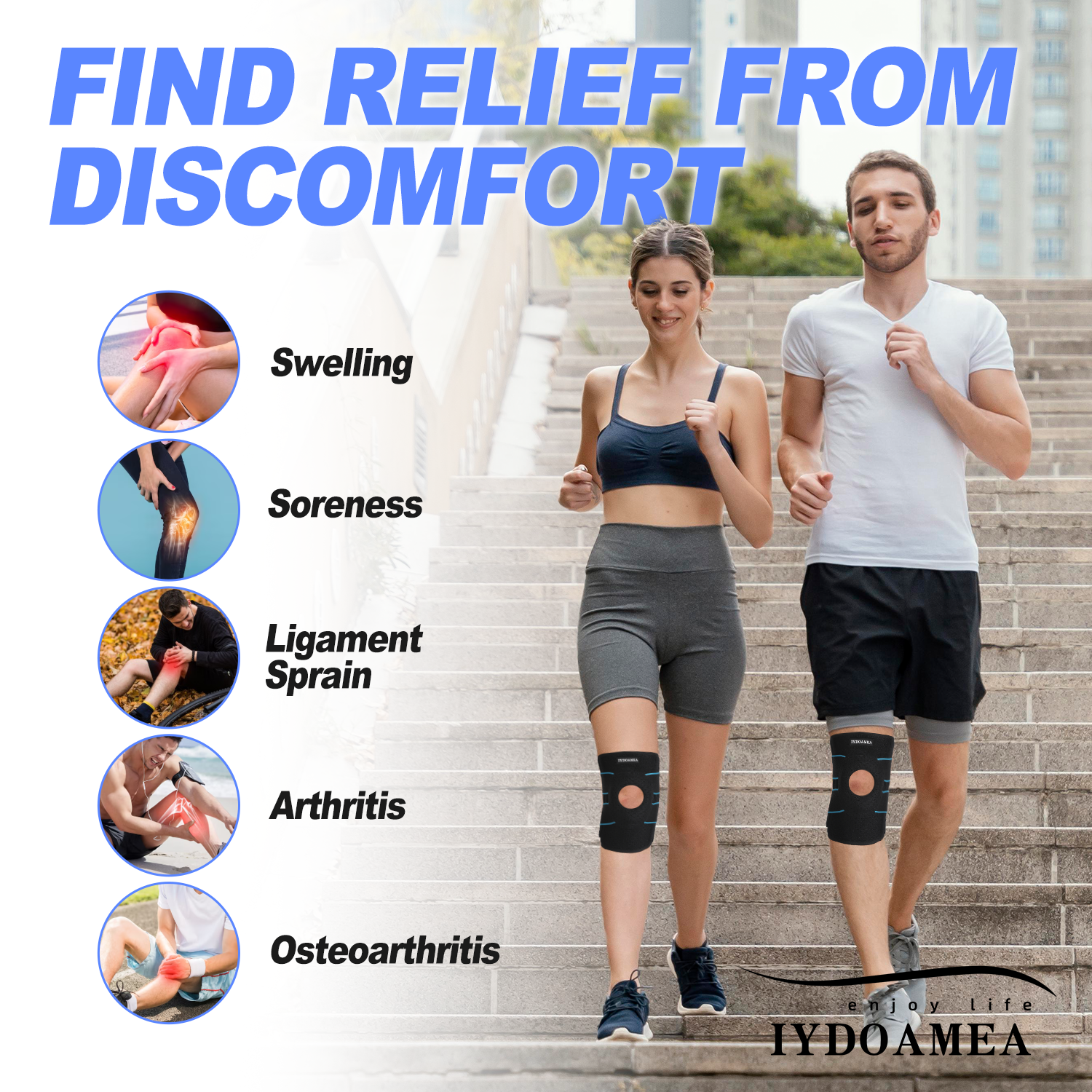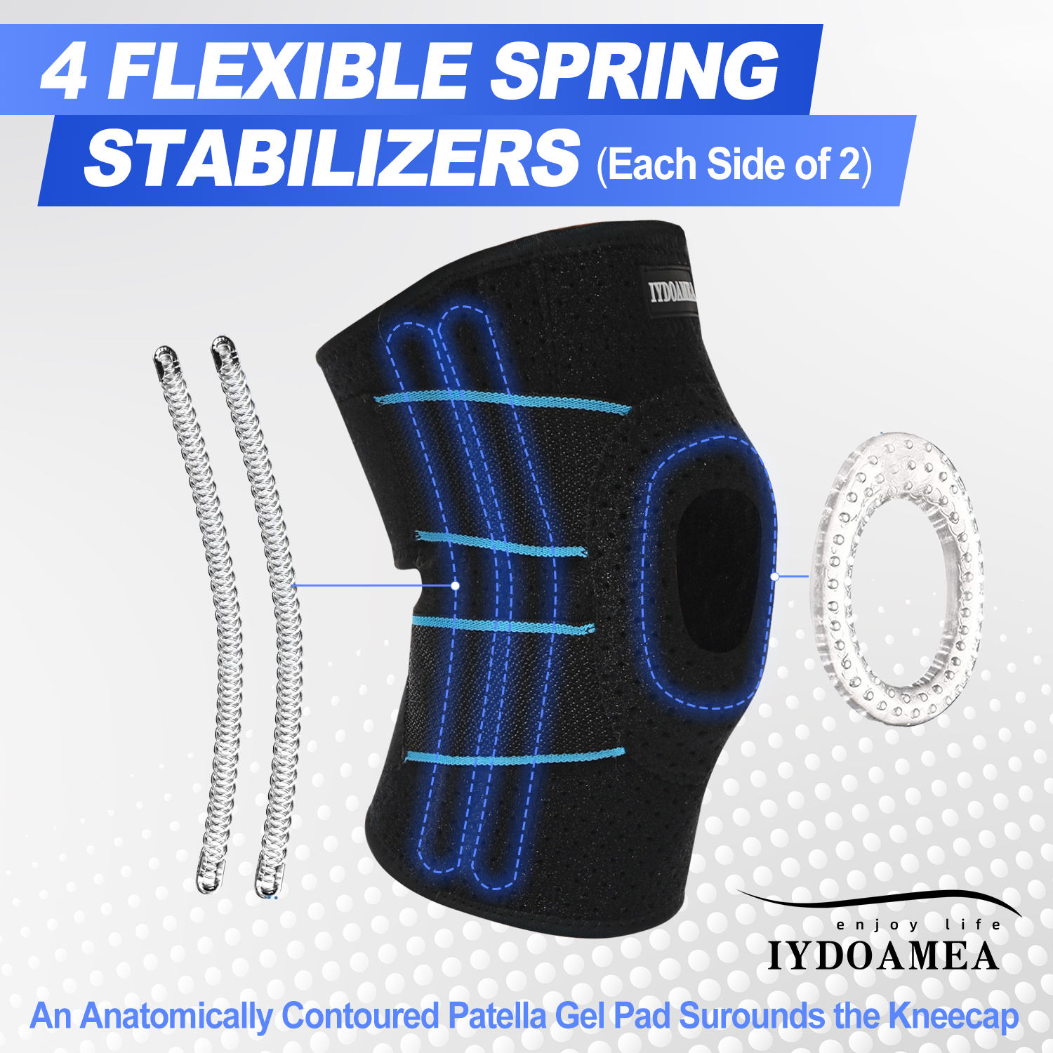 【No Medicine & Stay Away From Surgery】 ① IYDoaMea focuses on researching how to relieve knee joint pain, help relieve meniscus tears, arthritis, tendonitis, swelling, various ligament ( ACL, LCL, MCL, PCL) injuries, acute and chronic knee joint pain ② This knee brace for women and men suffering from knee pain, knee braces can significantly help you reduce knee pain, as far as possible away from surgery. This stable and Support knee brace fits the left and right legs