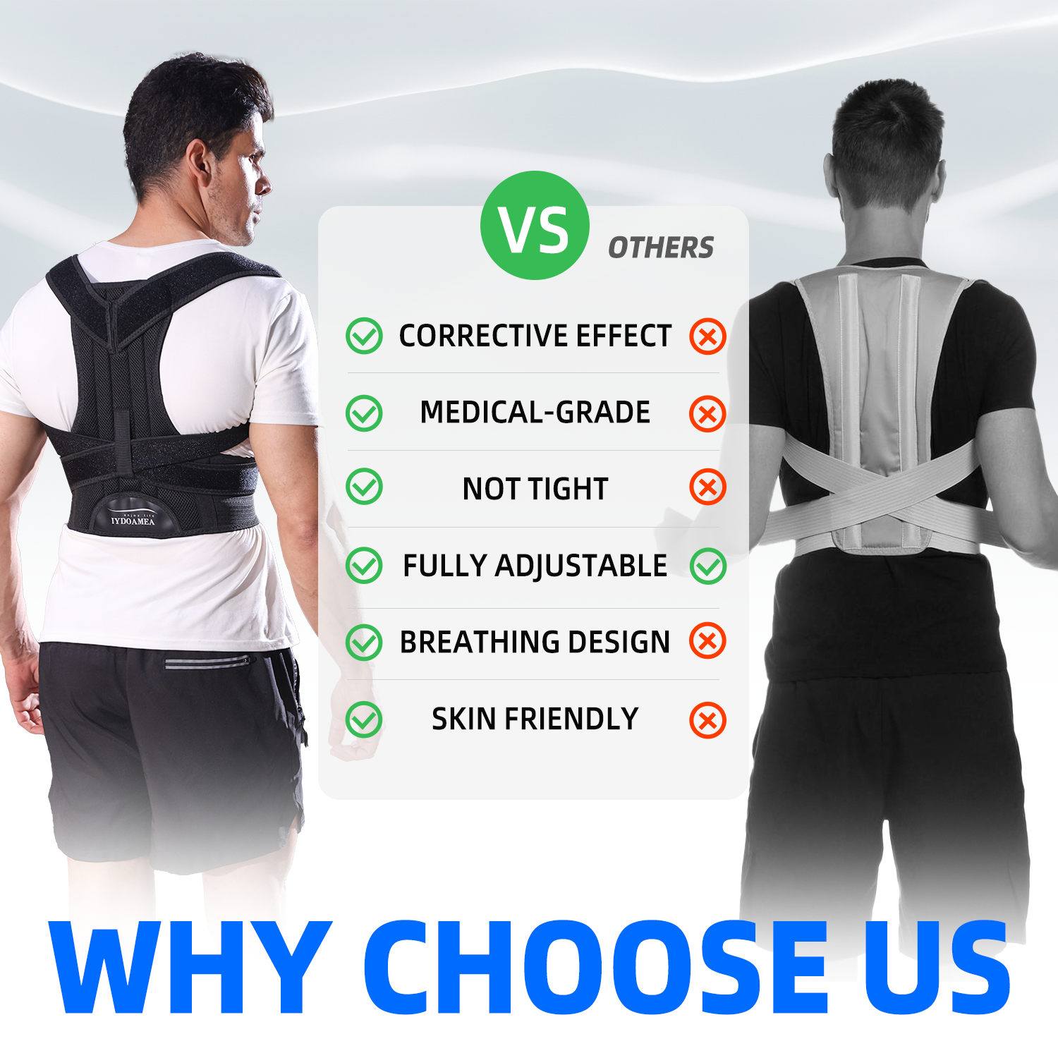 3. Unlike many posture correctors on Amazon that only extend the waistband for larger sizes, we proportionally scale up every part—including the back panel and shoulder straps—to ensure proper support and correction across all sizes. Others fail to adjust the back support area, resulting in insufficient coverage and stability for larger users.